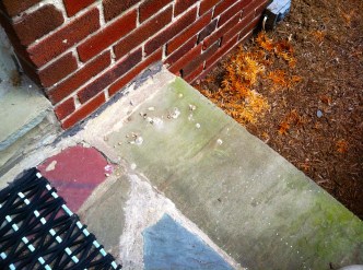 Eventually we heard back from one of my husband’s colleagues, who is a birder. She wanted to know if one of the baby’s parents was around. In fact, we had seen an adult dove near the baby, sometimes sitting on top of it to keep it warm, sometimes hovering nearby on one of the steps. Good, she said. Build a soft little nest. Put the squab in the nest. Then leave it alone and let the parent take over. As long as the parent does not abandon it, in a few days, maybe a week, it should be ready to fly.