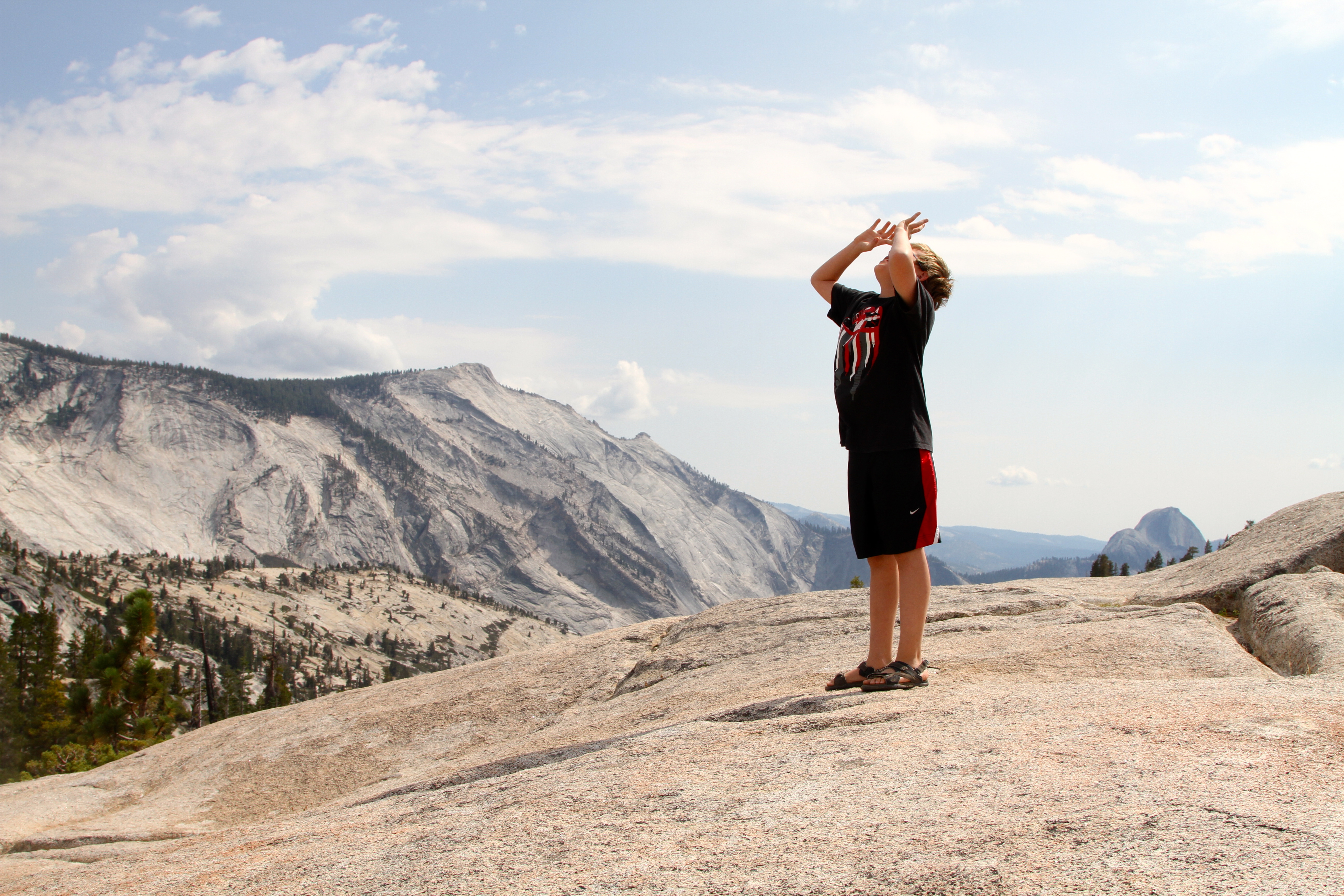 Given the hantavirus outbreak that continues to plague Yosemite, I’m glad we only passed through the park in a day, opting not to camp this time.  We told ourselves that some day we would return, and linger, some day when nobody in our mini van was potty training or insisting flip-flops are acceptable for hiking.  We’d leave the iPads at home so the kids would be forced to stare appreciatively out of their windows at the breath-taking scenery, just as we’d been forced to do on family vacations in the ancient time of B.D., Before Devices.  It took us over seven hours to make our way across the park with short stops and mini hikes along the way.  Seven hours, boys.  Don’t blink.